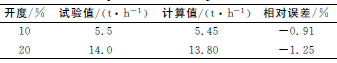 為了測試閥門的流通能力,用常溫水做介質,在閥前設置0.2MPa壓力、閥前后壓差為0.1MPa的工況下測量閥門開度為10%和20%時的流量。同時,在相同工況下,用CFD方法計算了對應開度下的流場。由于閥芯處承擔了閥門的主要壓降,因此計算時只考慮迷宮式盤片及其進出口附件的流道。考慮到盤片的對稱性,計算中選取圖1(b)中流道的1/16作為計算模型。表1為兩個開度下的試驗與計算結果。由表1可看出,計算值與試驗值之間的偏差小于1.25%,表明計算方法正確、可靠。
