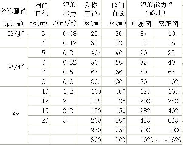 當選定了調節閥的類型和流量特性之后,就可進一步確定它的尺寸。流通能力是確定調節閥口徑的主要依據。所謂流通能力C,是指在調節閥前后壓差為100Kpa、水的密度為1000Kg/m3的條件下,每小時通過閥門的水的立方米數。調節閥口徑選擇按以下步驟進行。