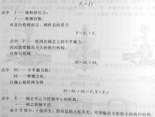 由圖1-10可見,直行程閥中單密封閥不平衡式結構,流開情形下,壓差易把閥芯頂開,故允許壓差小;而角行程閥的閥芯轉動,不平衡力矩為“力x力臂”,因力臂小,力矩小,故允許壓差大。