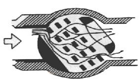 在調節閥的選型中,另一個重要的要考慮的問題是噪聲及汽蝕。特別是介質為高溫高壓的蒸汽。就調節閥來說,前后差壓愈大,介質流速就愈大;流速愈大,則產生的噪音就愈大;同時對閥芯和閥內件的破壞也愈大。噪聲產生后,不僅嚴重損傷閥芯和閥座,在嚴重的情況下,還能對閥的下游工藝管道引起共振,嚴重影響工藝的正常生產:另外噪音對工人的人身健康也產生極大的危害,依據國家《工業企業噪聲衛生標準》中的第五、六條的要求,每個工作日接觸噪聲8小時,允許噪聲為85dBA以下,每個工作日接觸噪聲小于1小時,噪聲最大不超過115dBA.除此之外,伴隨著噪音的產生,還會有氣蝕、閃蒸等一系列問題伴隨出現,這些情況的出現,將嚴重影響調節閥的工作質量及穩定性,更會大大地縮短此閥的使用壽命。 在Neles的計算書中,對噪聲有一欄專項計算,由于Neles所選的Top5系列的調節閥內件采用了很好的降噪及消除汽蝕內件,即Q—Trim降噪件(Neles的專利),該Q—Trim內件的結構如下(圖一):