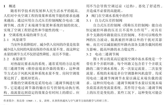 隨著科學技術的發展和人民生活水平的提高,人們對中央空調工程的效果和系統節能的要求也越來越高。通過應用自力式壓差控制閥配合電動二通調節閥,改善了末端調節裝置和系統控制的狀況,實現了空調工程舒適性和節能性的統一。